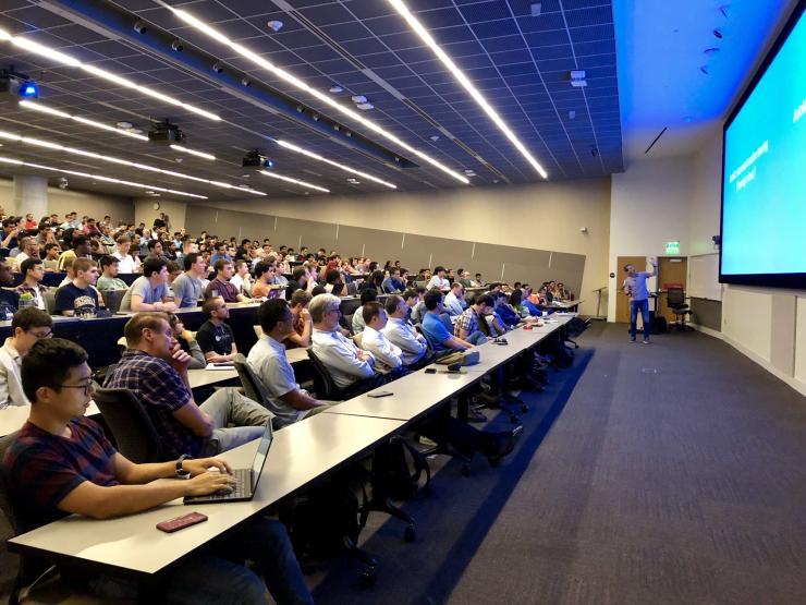 Dean’s main talk was held in the Clough Undergraduate Learning Center. More than 600 people attended to hear his perspective on Using Deep Learning to Solve Challenging Problems. Dean touched on topics including how Google is working to improve diversity, solve healthcare problems, and put autonomous cars on the road during the talk.