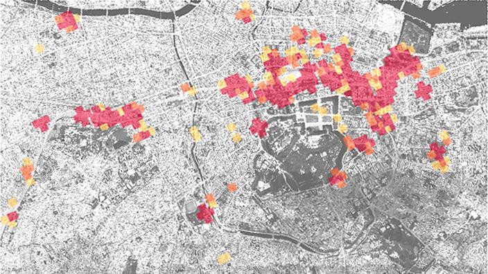 In collaboration with partners in Japan, researchers searched geotagged twitter data for terms related to heat discomfort. They found a high correlation between the predicted risk zones and areas where people complained about heat.