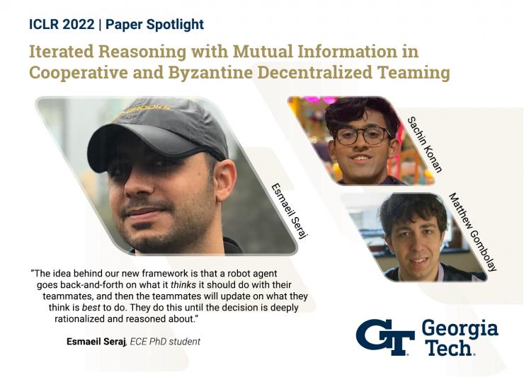 The research is published in the 2022 Proceedings of the International Conference on Learning Representations. The paper, Iterated Reasoning with Mutual Information in Cooperative and Byzantine Decentralized Teaming is co-authored by computer science major Sachin G. Konan, Seraj, and Gombolay.